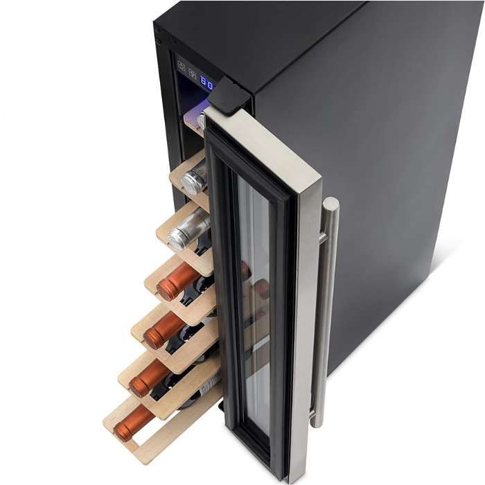 The Koolatron wine cooler is an excellent choice for those who need a slim and stylish wine fridge to store up to 7 bottles of wine. Its low-vibration compressor cooling system helps keep the temperature consistent, while its digital touch controls and clear digital display make it easy to adjust the settings.