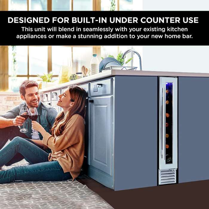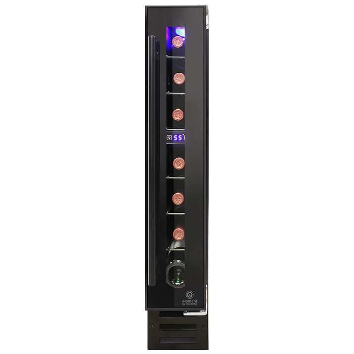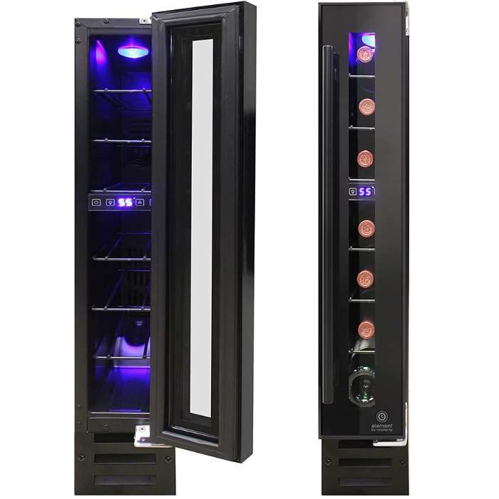 - This wine fridge has a slim design that is only 6 inches wide, allowing it to fit snugly under your 6” cabinet space for a sleek and integrated look.