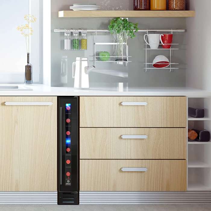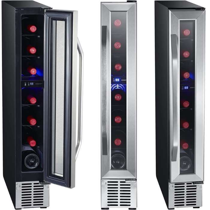 After researching, we have selected 5 high-quality compact wine refrigerators: they all have a width of 6 inches and can hold up to 7 wine bottles.