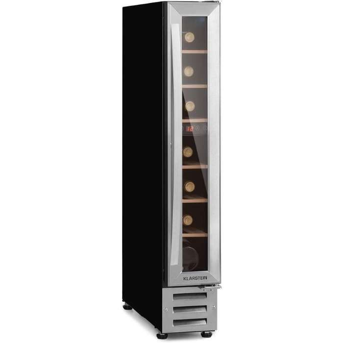 The Klarstein Vinovilla wine fridge is perfect for those looking for style and functionality in a slim, built-in design. It has a touch control panel with an LCD and LED interior lighting, which allows you to easily view the temperature and contents of the wine fridge.