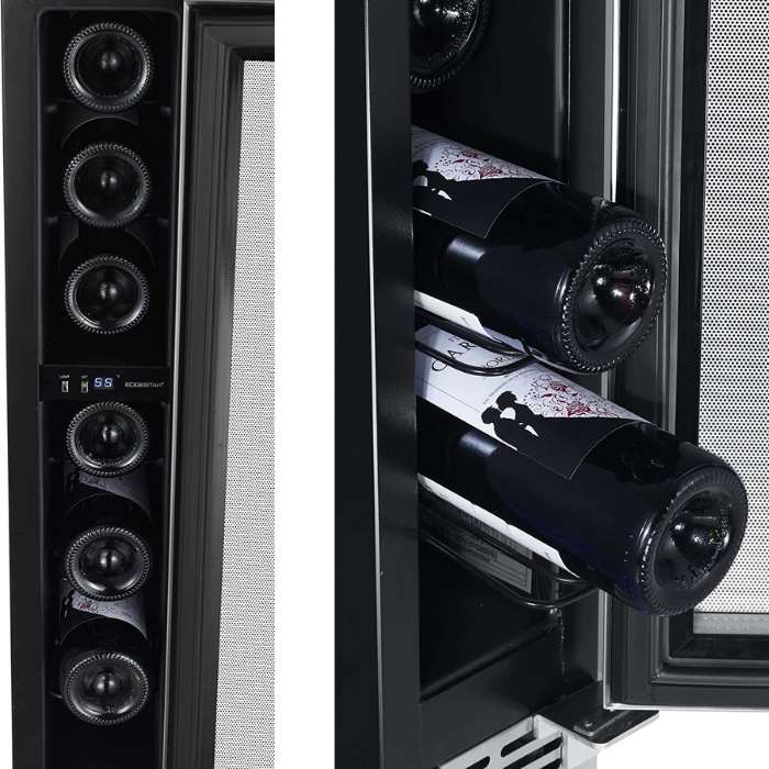 The NewAir wine fridge is an excellent choice for those who need slim and stylish wine storage to hold up to 7 bottles of their favorite wines. Plus, its UV-protective double-paned glass allows you to showcase your collection in style.