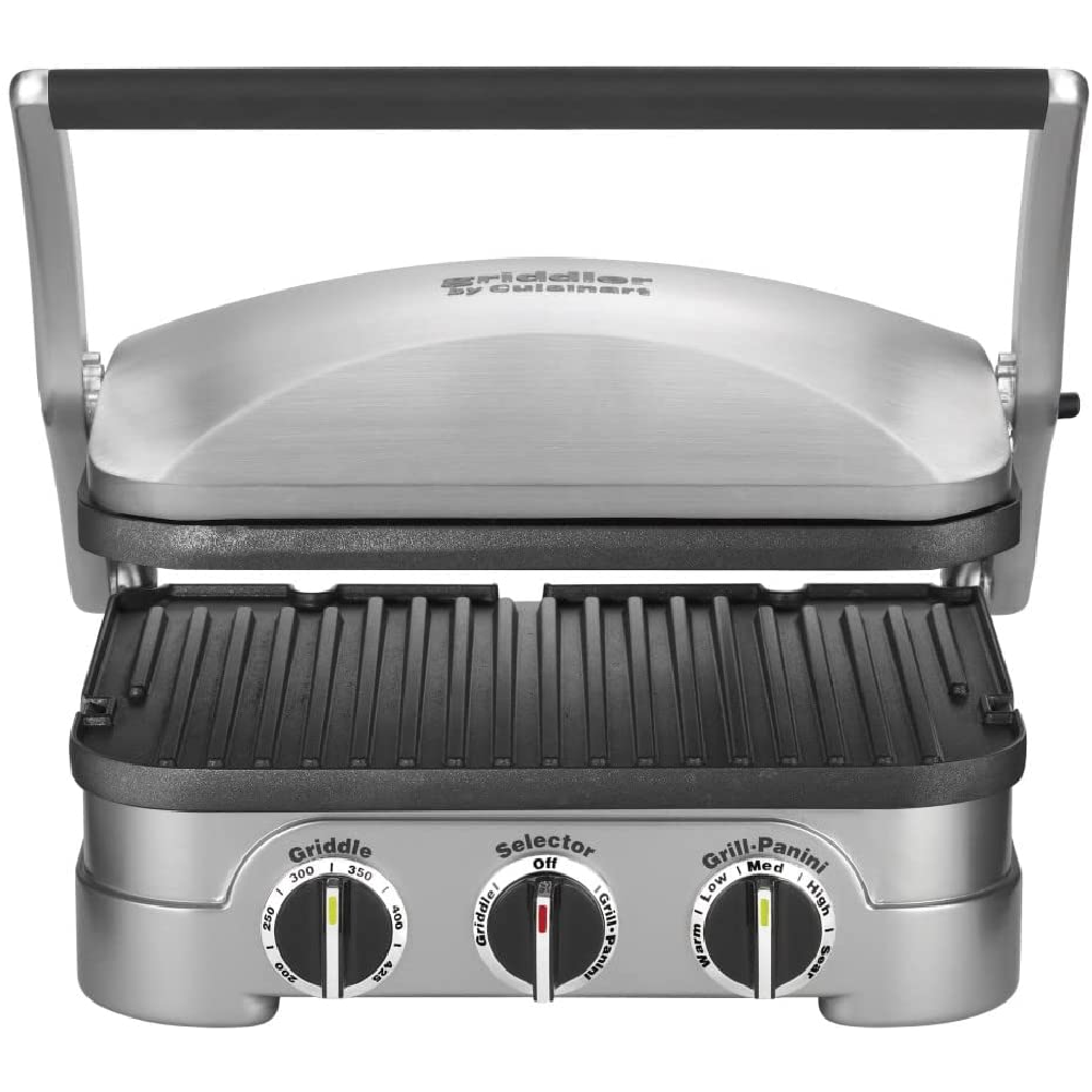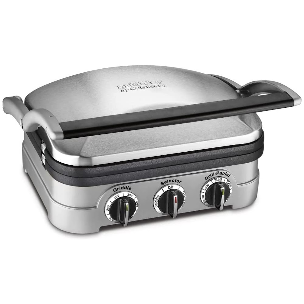 This versatile griddle can handle everything from pancakes and sausages to grilled cheese to steaks, hamburgers, and panini. With five separate cooking options, the Cuisinart Griddler is perfect for any meal.