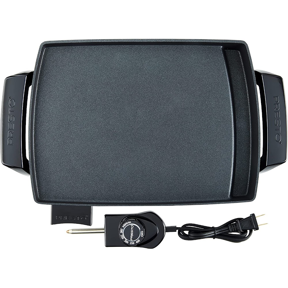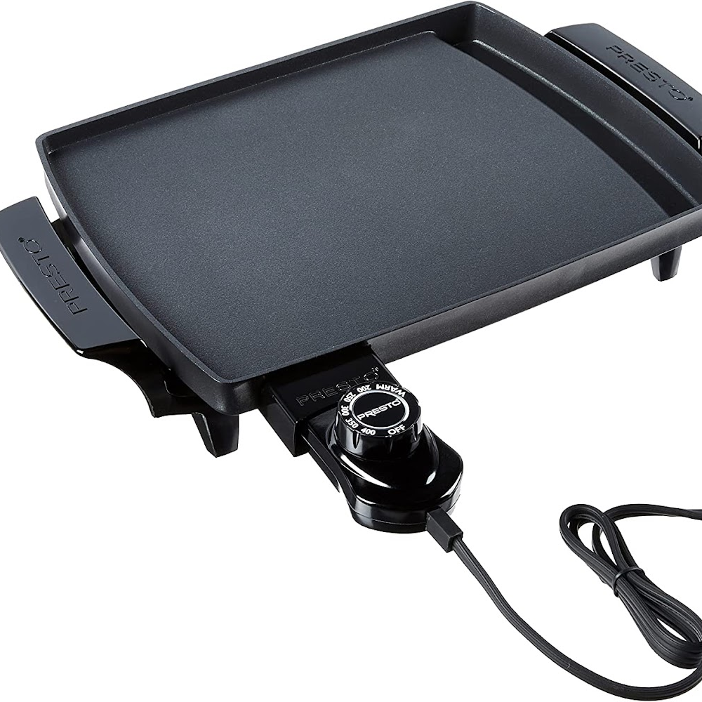 This 1000-watt griddle is perfect for any 120-volt outlet, and automatically maintains temperatures ranging from warm to 400 degrees Fahrenheit.