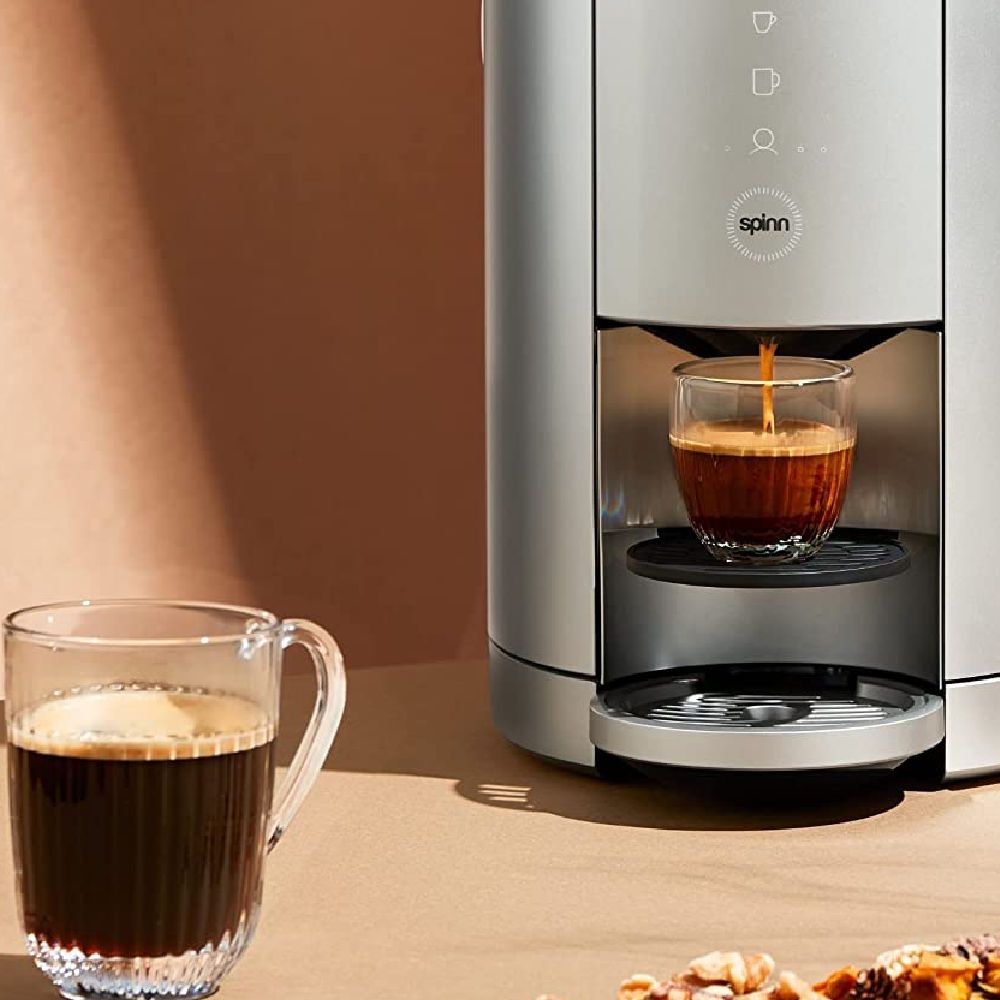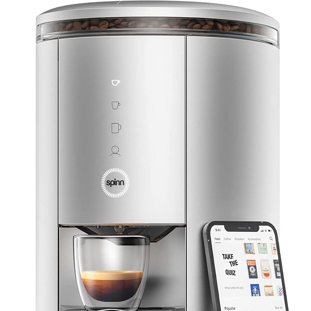The built-in grinder delivers freshly ground beans on demand. The Spinn, an "Alexa coffee maker", allows you to customize your recipes and monitor brew strength and brew remotely from your connected app.
