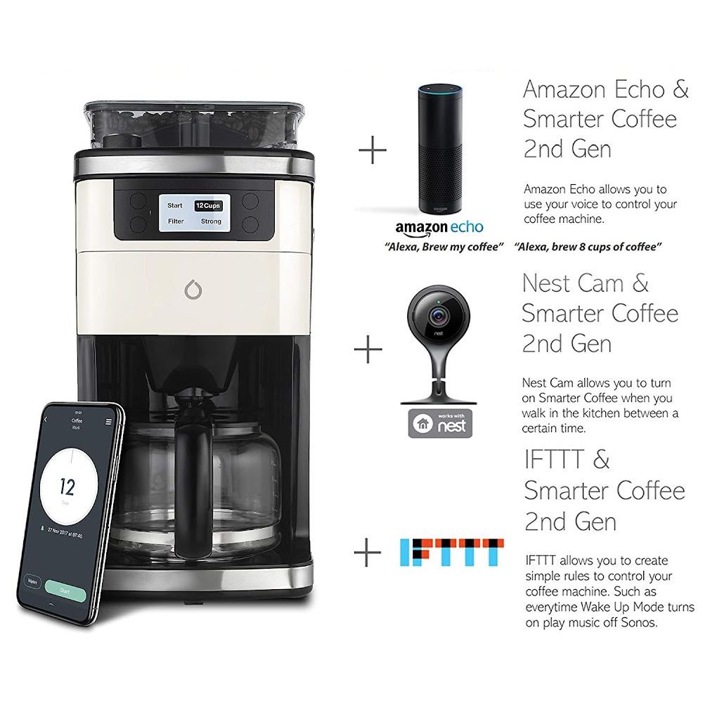 The Smarter Coffee machine, for example, can be controlled entirely from your smartphone, meaning you can set it to brew while you’re still in bed.
