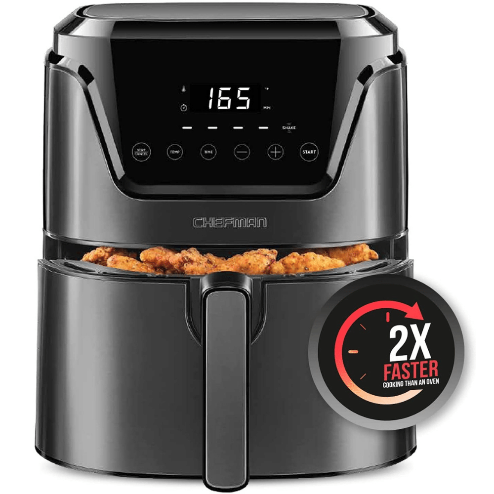The stainless-steel design of the Chefman 4.5-quart Air Fryer allows you to cook like a pro in your own kitchen. The compact, space-saving 4.5-quart capacity is enough for a small family. It doesn't take up too much room on your counter.