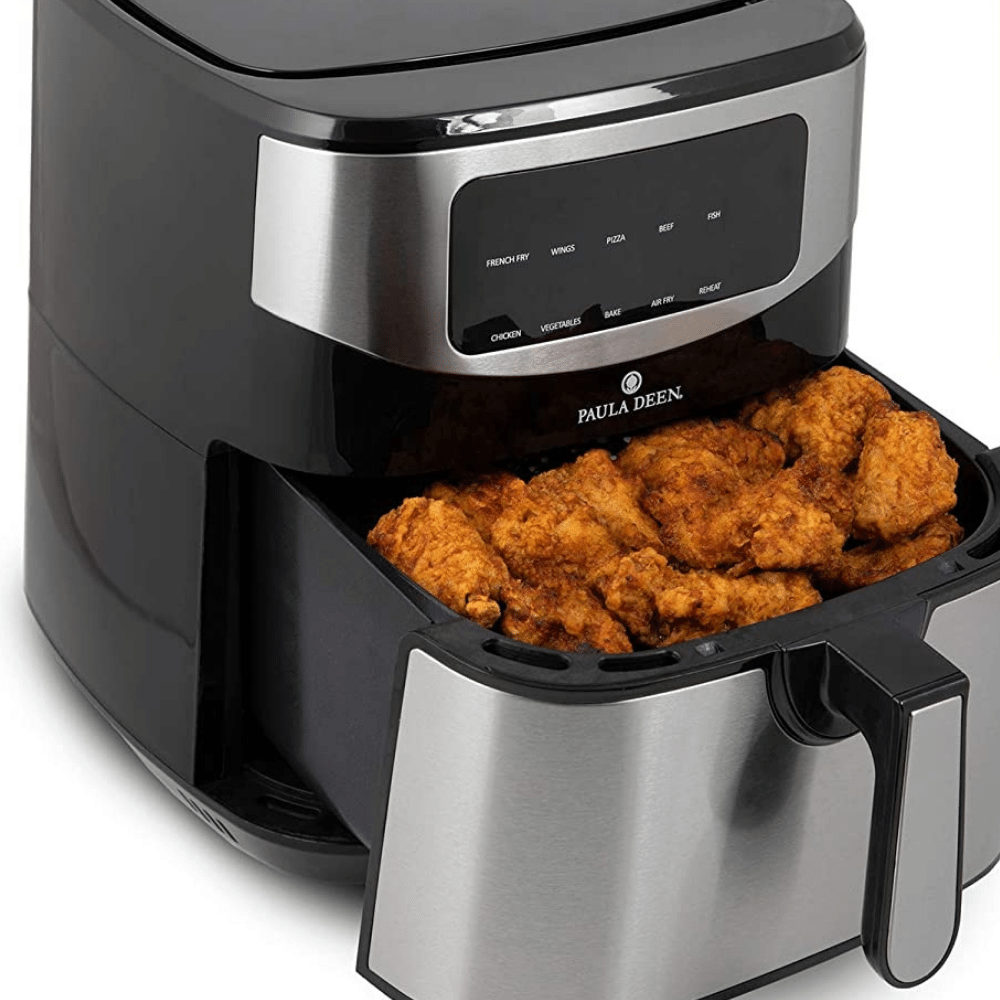 The Paula Deen Stainless Steel Digital Air Fryer is a good choice for those who want an air fryer with a professional look and a single basket. The hot air circulation system cooks foods quickly and evenly.