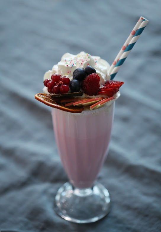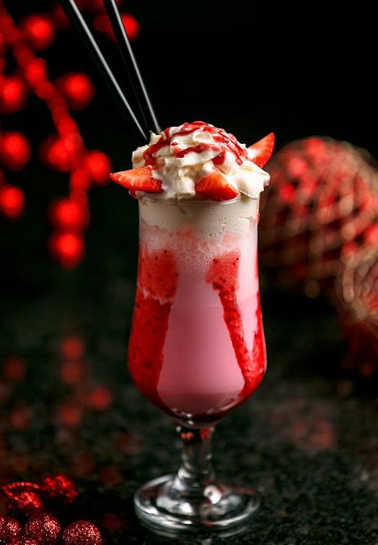 - And for an even more indulgent strawberry milkshake, top it with a dollop of whipped cream and some strawberry syrup.