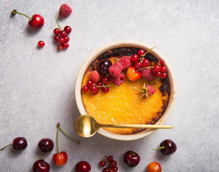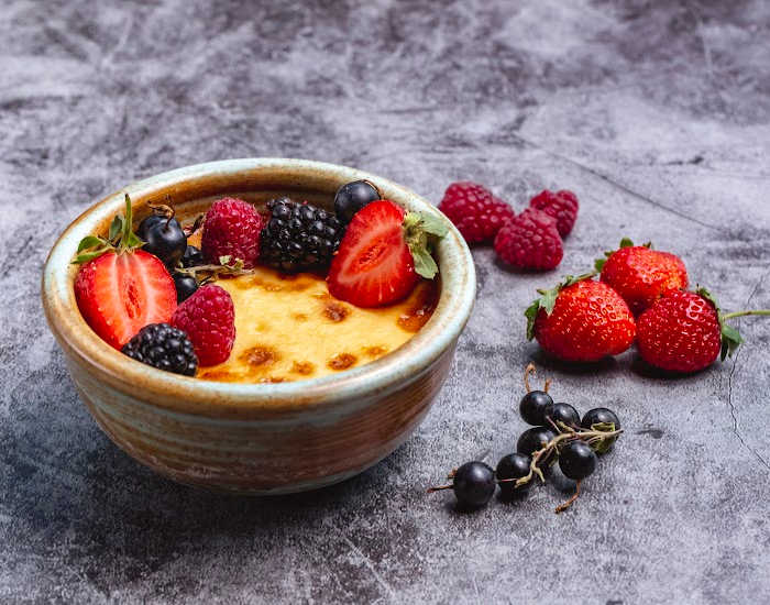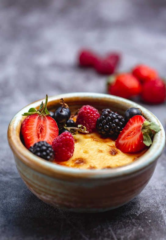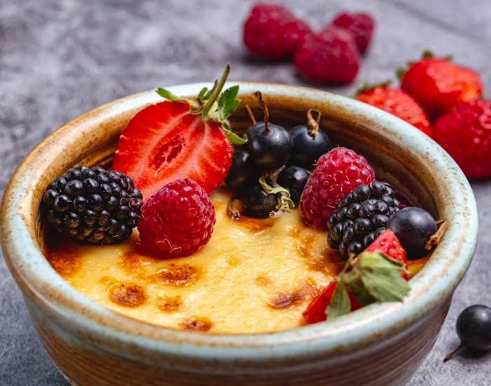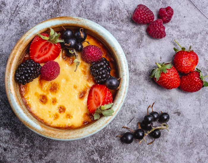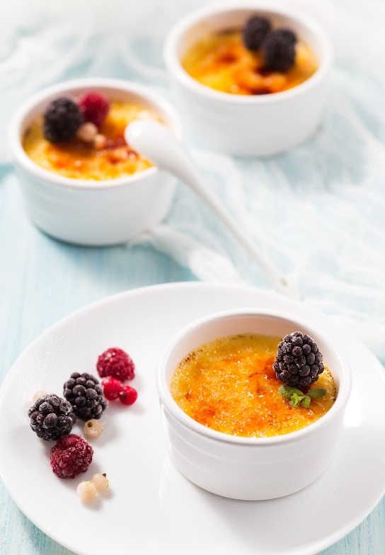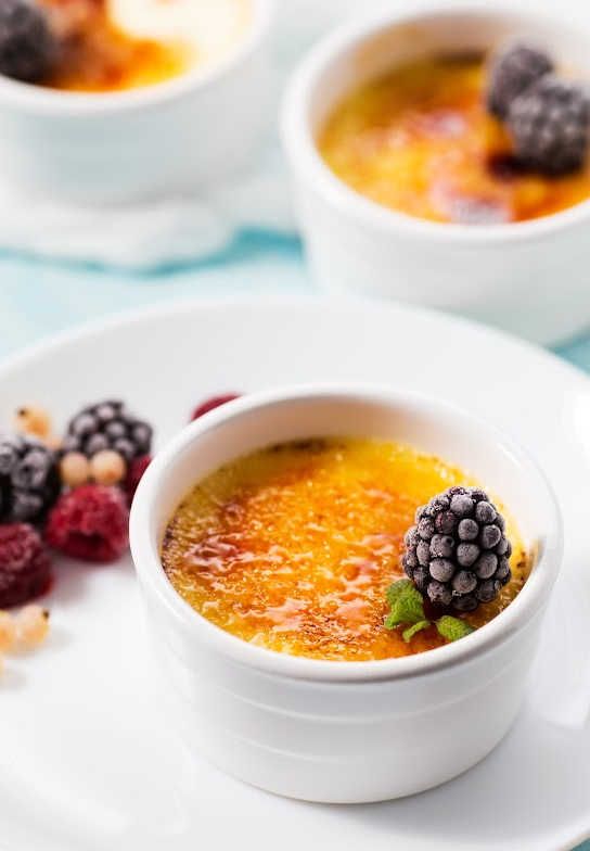 - If you can't find fresh berries for garnish, replace with the frozen variety. Just make sure to thaw them out before adding them on the crème brûlée.