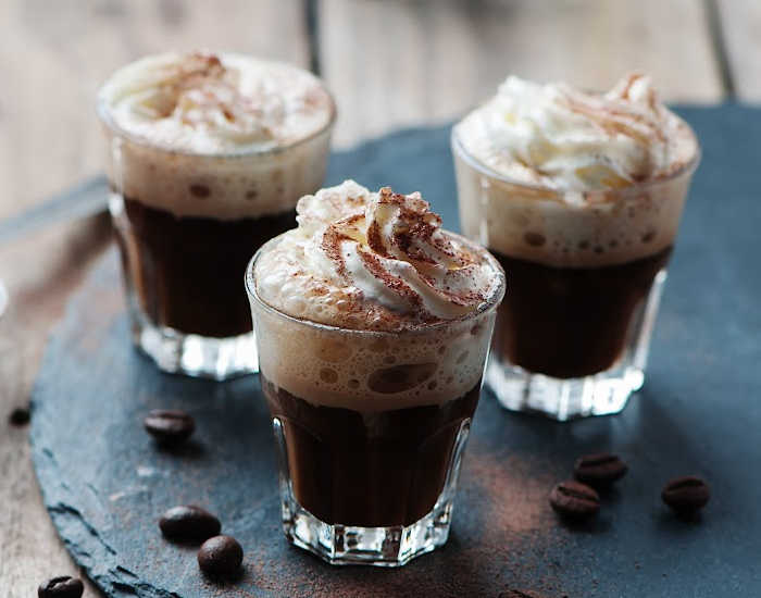 On the other hand, Italian espresso con panna is just what its name suggests – a single shot of espresso topped with a generous dollop of whipped cream.